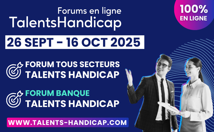 Du 26 septembre au 16 octobre 2025 a lieu la 35ème édition du forum en ligne Talents Handicap. Cette édition met un accent particulier sur les métiers du commerce, de la vente et de la relation client. Ouvert à tous les secteurs et métiers, ce forum vous permet de rencontrer des employeurs engagés qui proposent des conditions de travail adaptées et inclusives.
