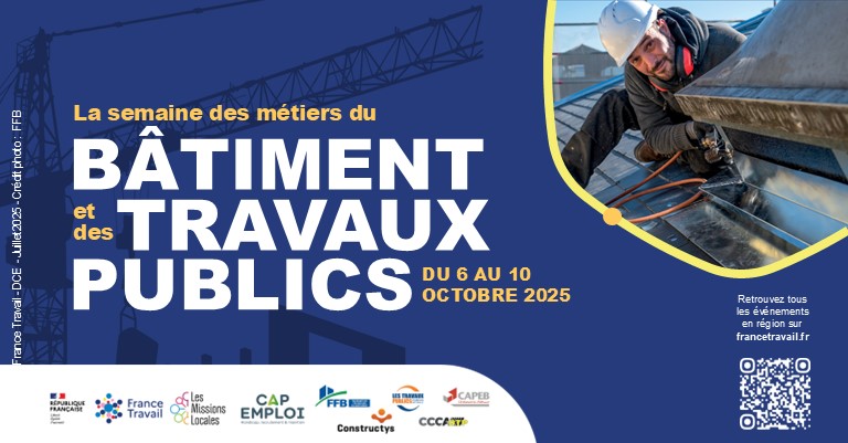 Du 6 au 10 octobre 2025, construisez plus que votre avenir ! Venez à la découverte des nombreux métiers du bâtiment et des travaux publics et leurs perspectives d'évolution.